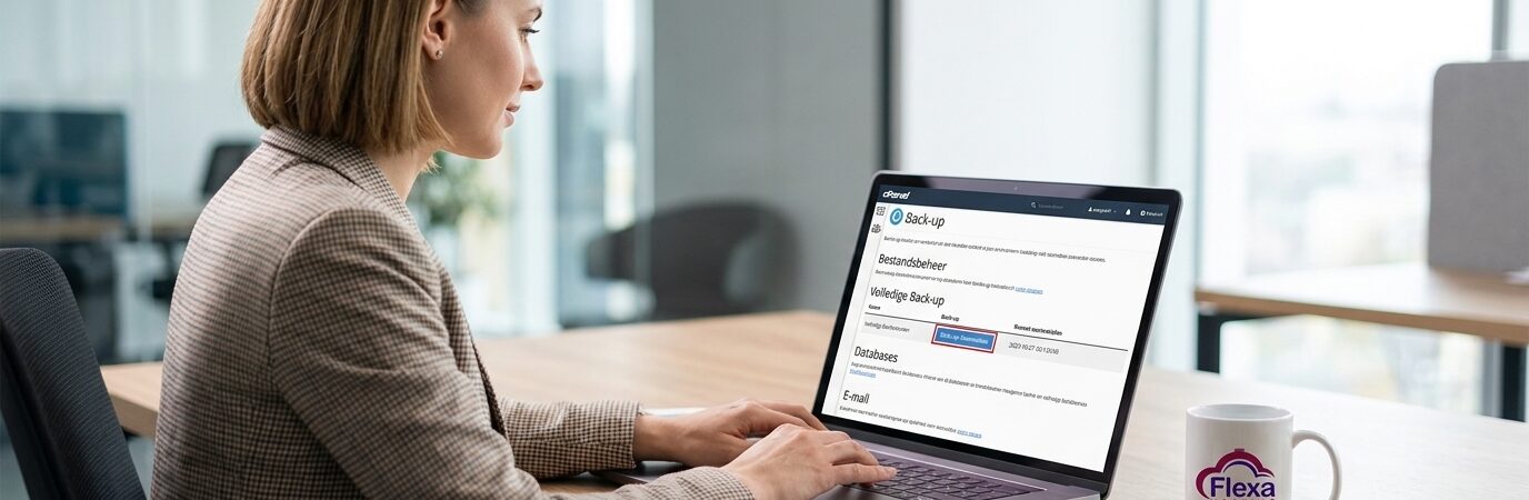 Bij Flexa Hosting weten we hoe onmisbaar je website voor je is. Daarom willen we je laten zien hoe eenvoudig het is om een back-up te maken en te downloaden met cPanel. Stel je voor: je harde werk is veilig opgeslagen en altijd binnen handbereik, zelfs als het ondenkbare gebeurt. Met slechts een paar klikken in cPanel kun je een complete kopie van je websitebestanden, databases en e-mails veilig stellen. Dit betekent dat je altijd klaar bent voor het geval je gegevens onverwacht verloren gaan of beschadigd raken.